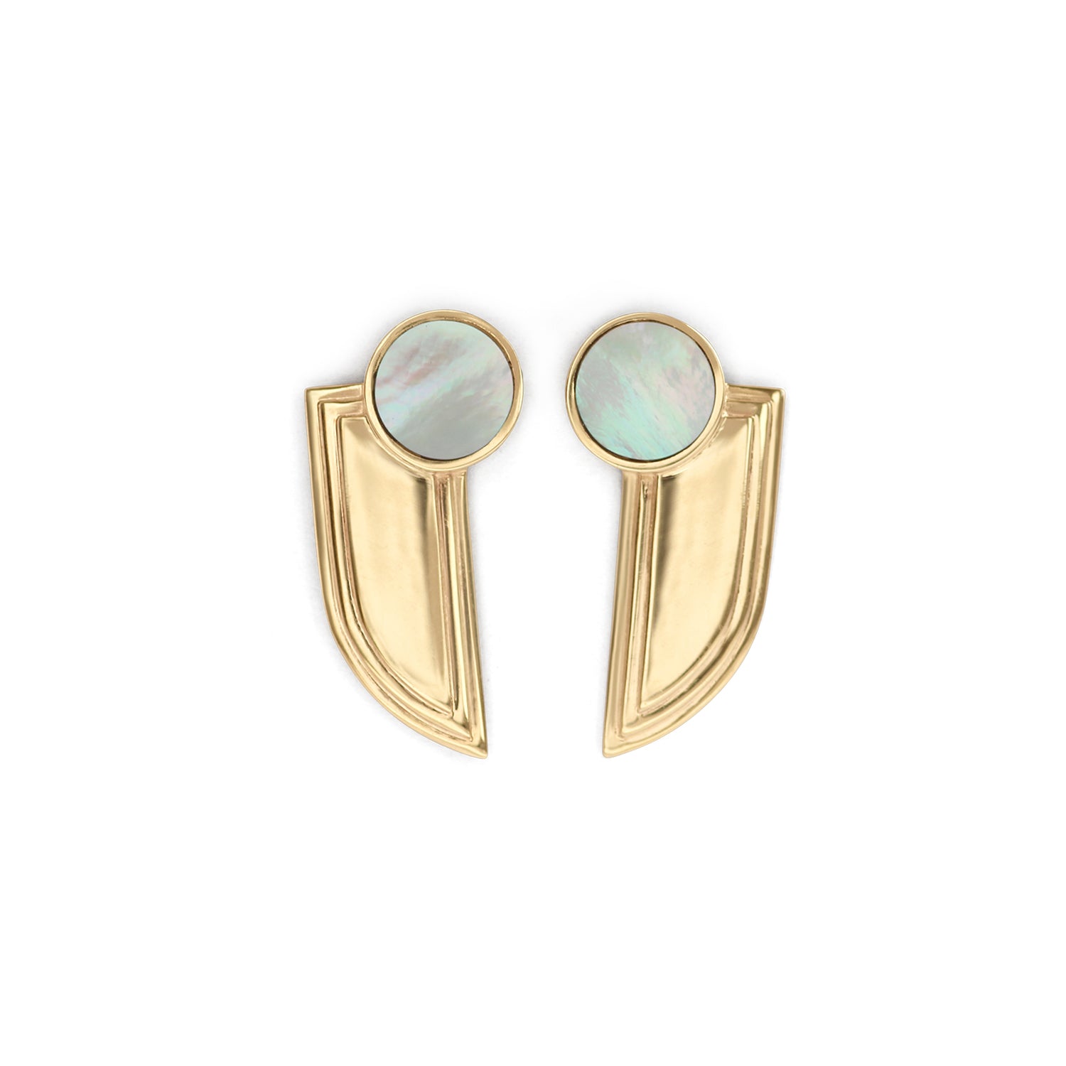 Step Wing Earrings Mother of Pearl InlayDetails: 14K Yellow Gold/Mother Of Pearl, 26mm long Donation Retail Price: $1340 Food Pantry Organization: North Brooklyn Angels |