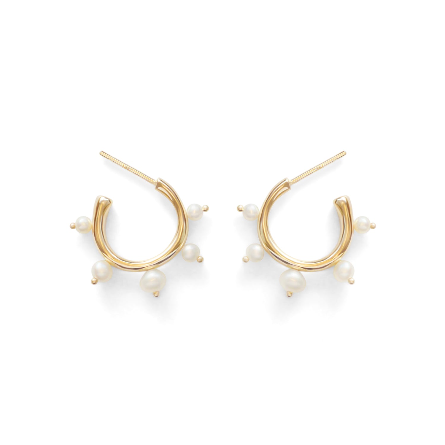 Amorphous Hoop Small Bead PearlAmorphous yellow gold hoop earrings with pearls, inspired by the wood sculptures of Sandra Chamberlin. |