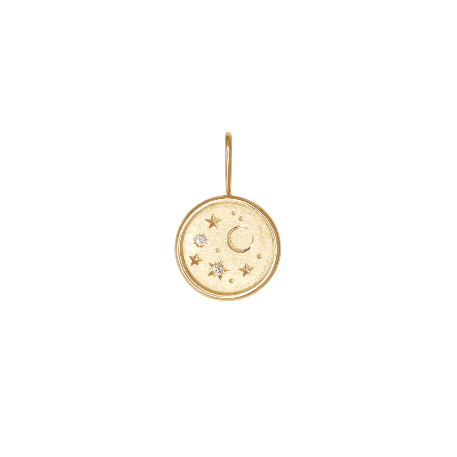 Celestial Coin Charm Round Natural DiamondsA coin style charm with celestial engravings and natural diamonds. |