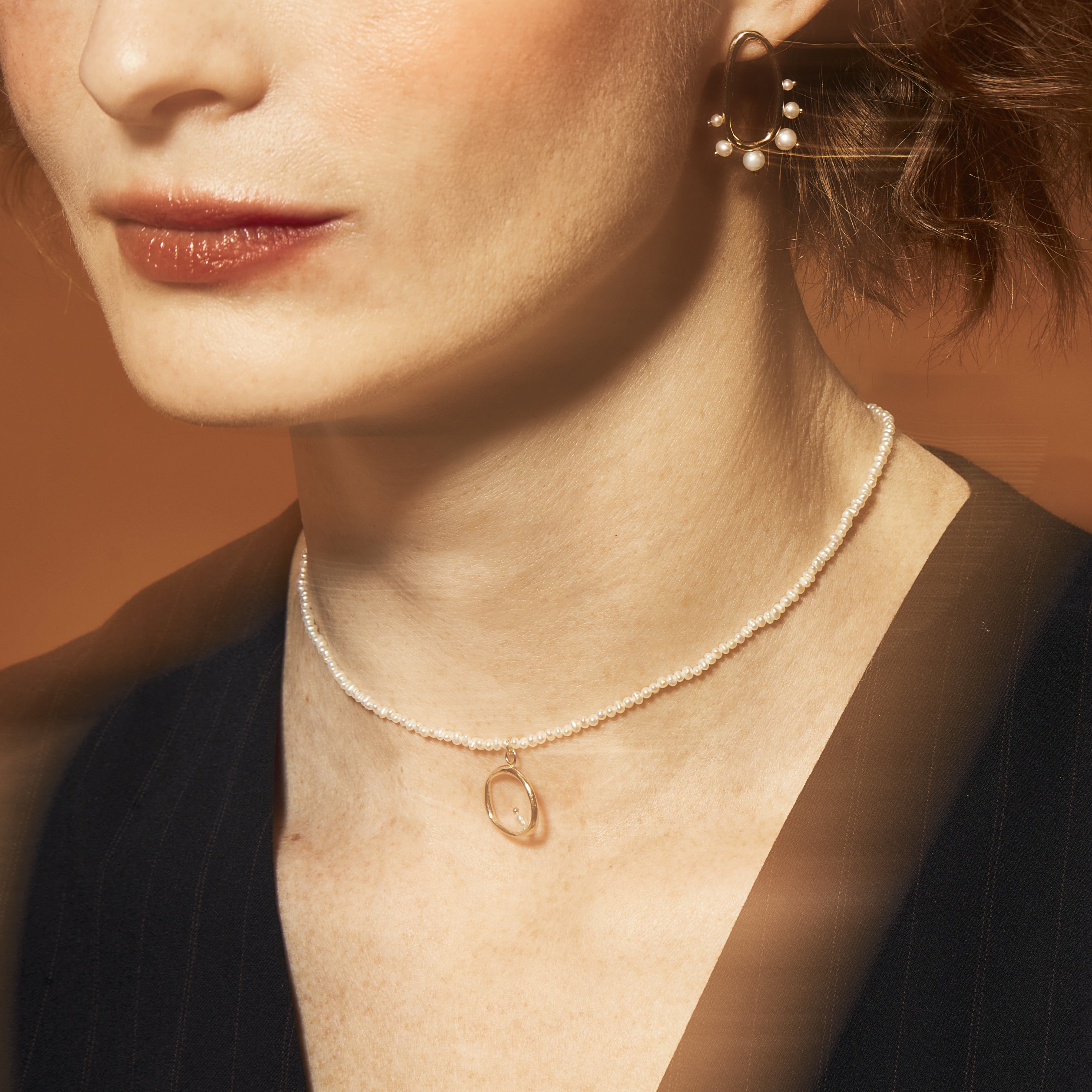 Amorphous Pearl Inlay + Bead Earrings Small Circle