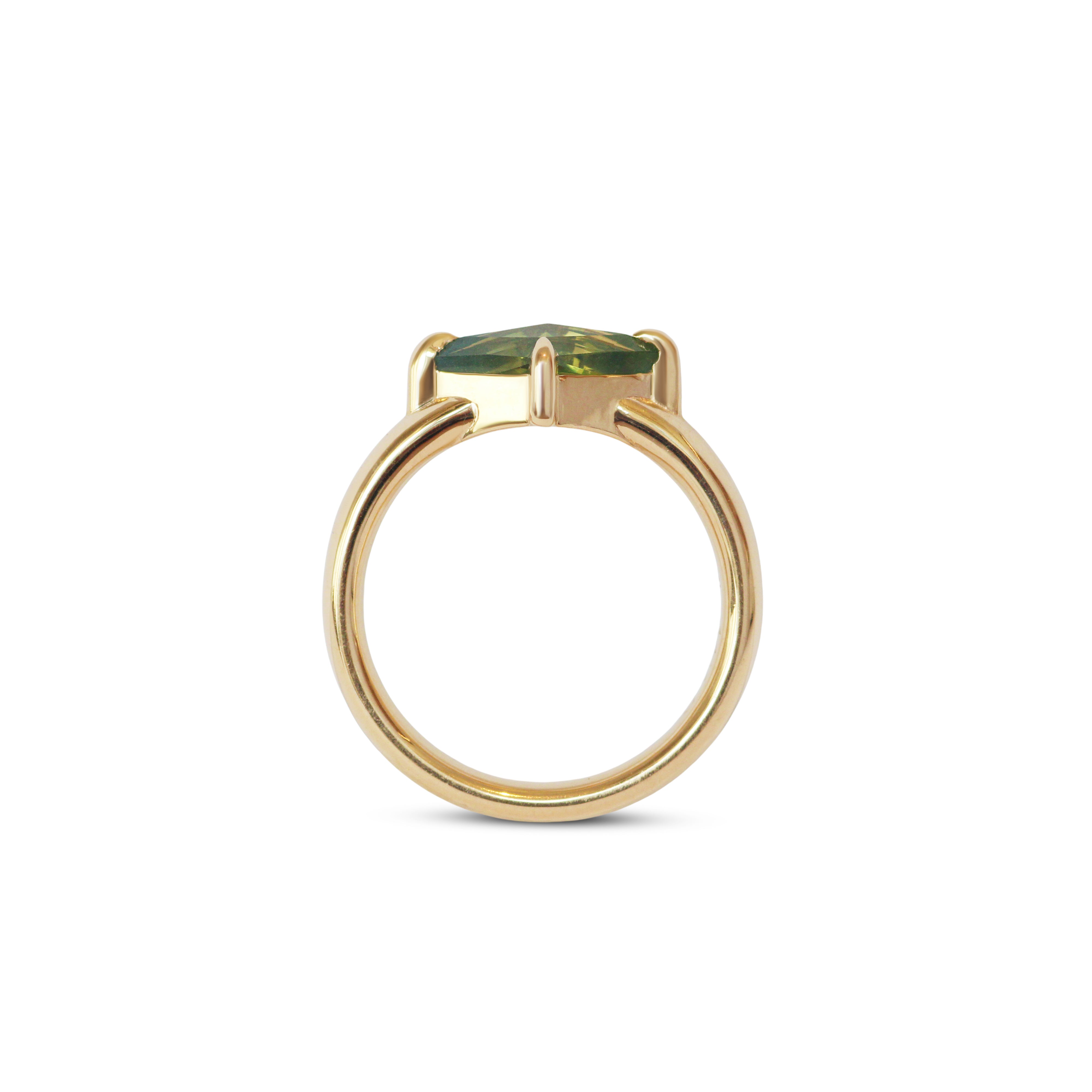 Rose Cut Kite Sapphire set with long claw prongs on our signature comfort fit ellipse band. A bold & modern engagement ring with a low profile, practical for everyday wear.